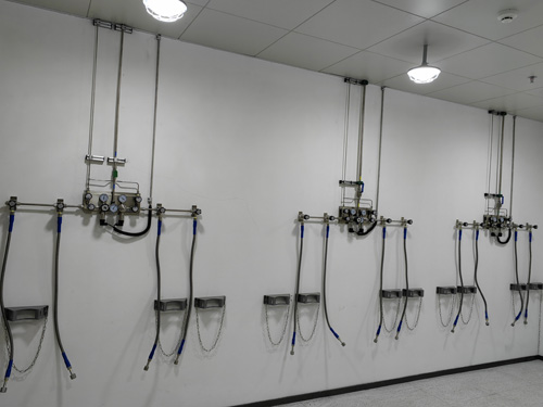 2.4N氫氣主觀線使用OD3/8”(6.35mm)的排水管,0.5Mpa負壓齷齪量電動車續航8M3/分鐘,全部提供標準用氣訴求,支線使用OD1/4”(6.35mm)的排水管。用電焊三通管件分成支路來對機 去供氧。